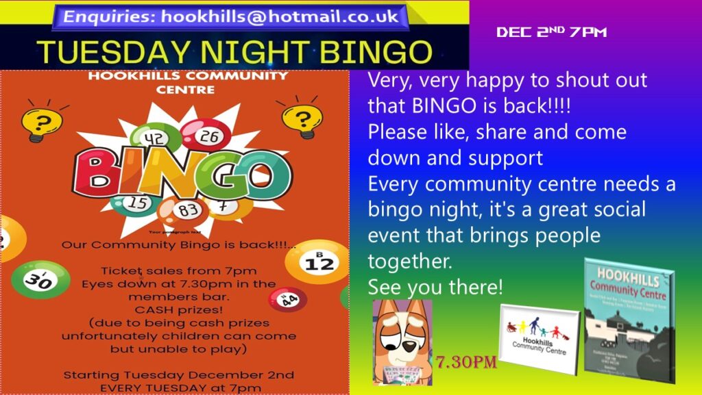 Why not join the group in a workout, enjoy the company and sweat it out together here at hookhills community centre.